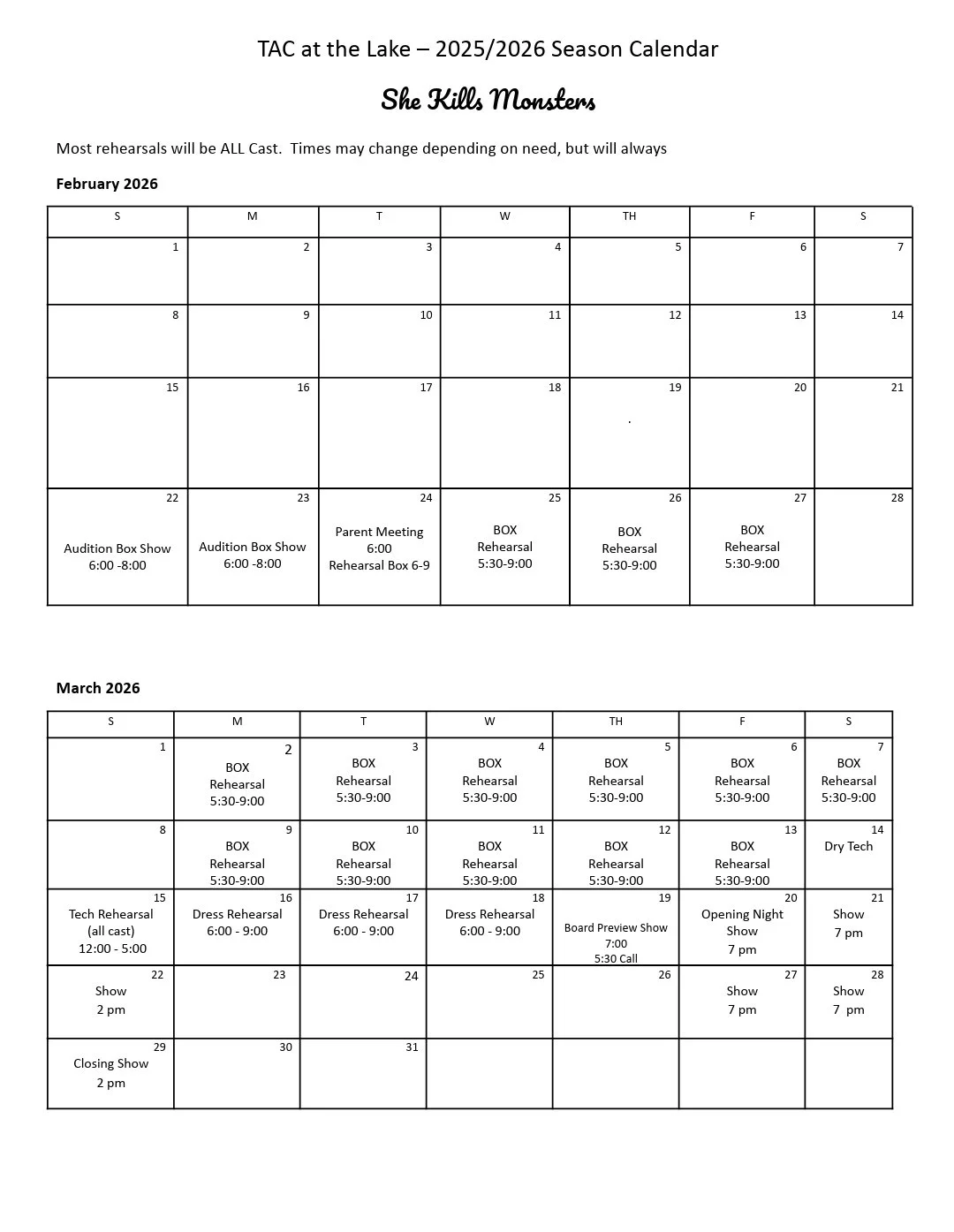 • Rehearsals will start on time and end on time. Please be at least 5 mins early to pick up your child.